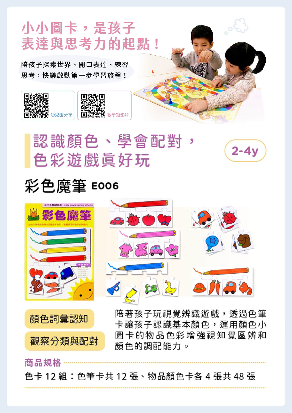 *培養孩子對色彩的敏感度;可以和「彩色筆」相互配合使用和認識。