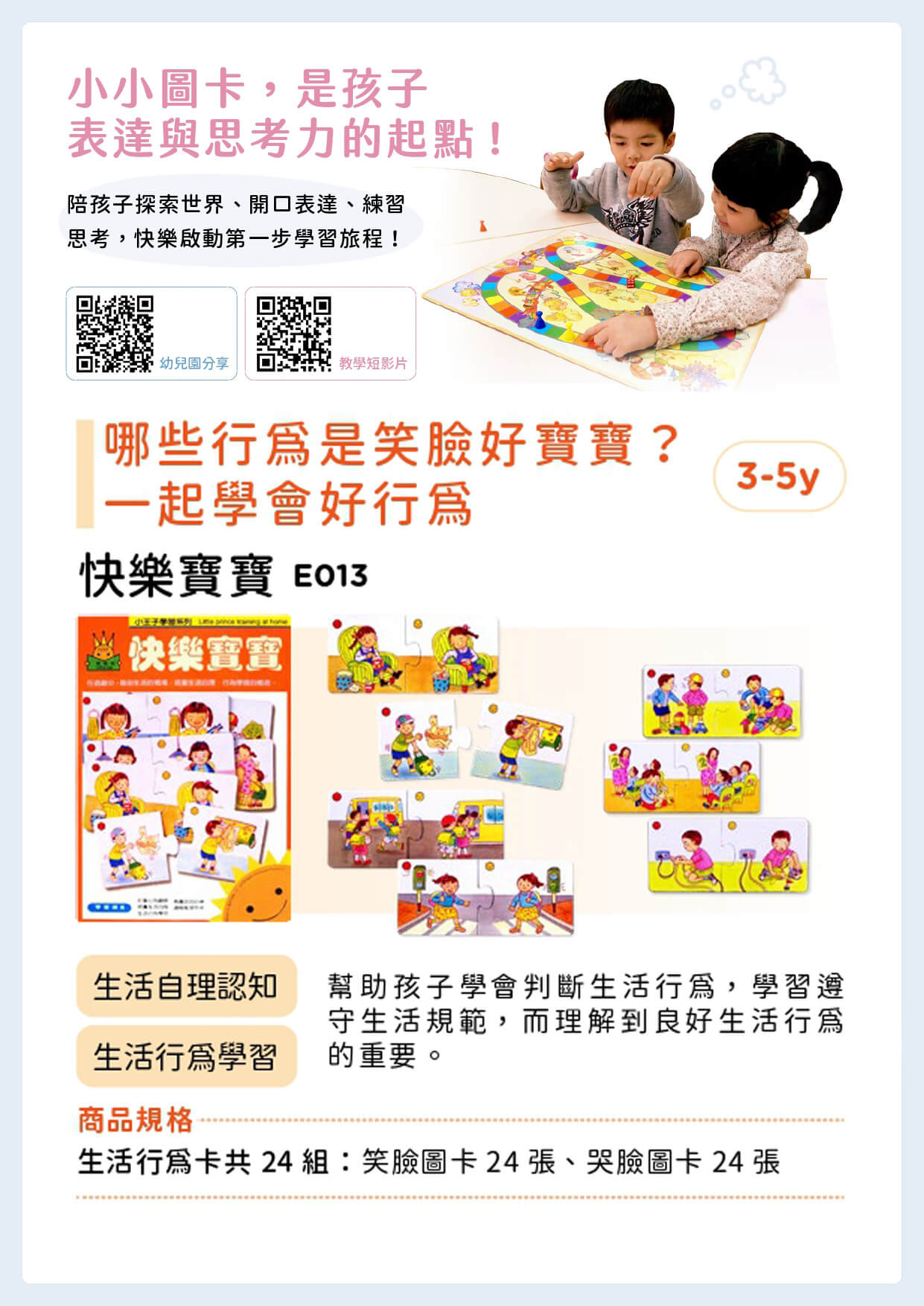 註:48張情境圖卡可分多次使用,讓孩子細看、鼓勵多說、多表達!並加以讚許。