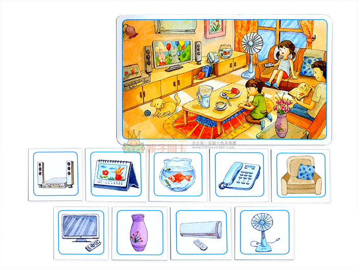 讓孩子找出小圖卡的物品,