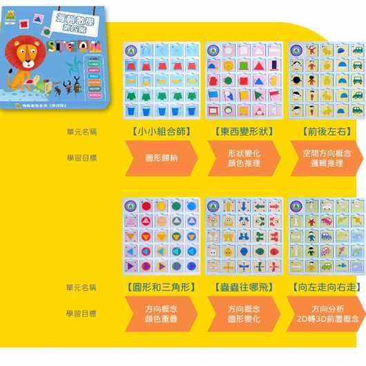・邏輯數學圖卡:一輯共6組單元,每組24片,共144片圖卡
